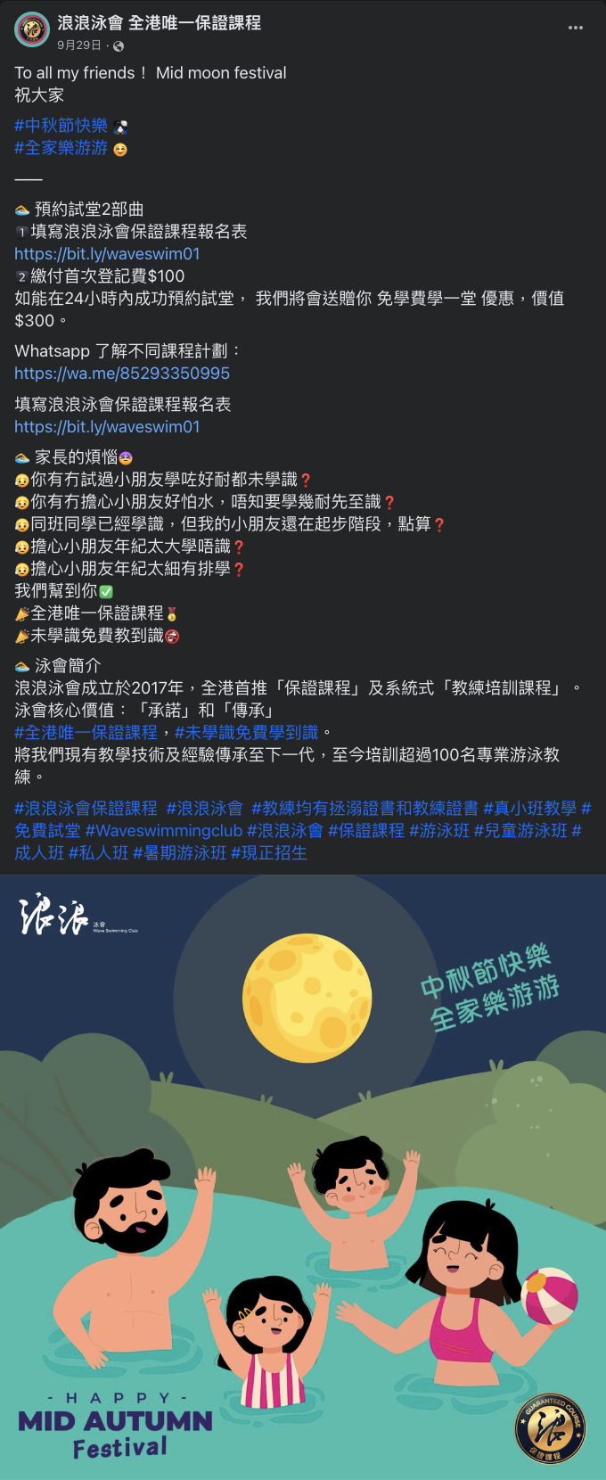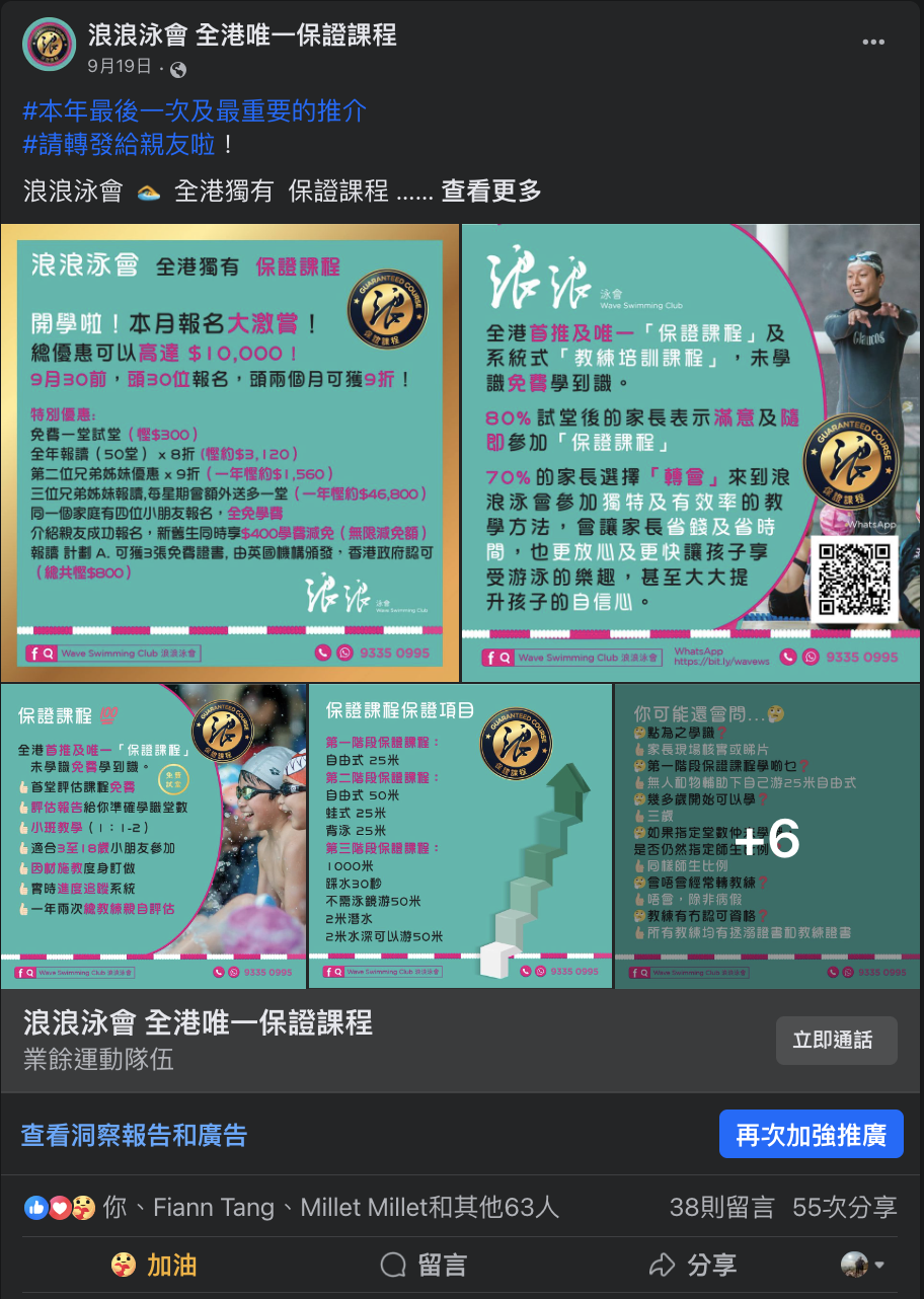 WAVE SWIMMING CLUB 浪浪泳會, Facebook post and Ad settings, Graphic Design, copy writing, Photo shooting, Video shooting, Logo design, Brand Identity design,